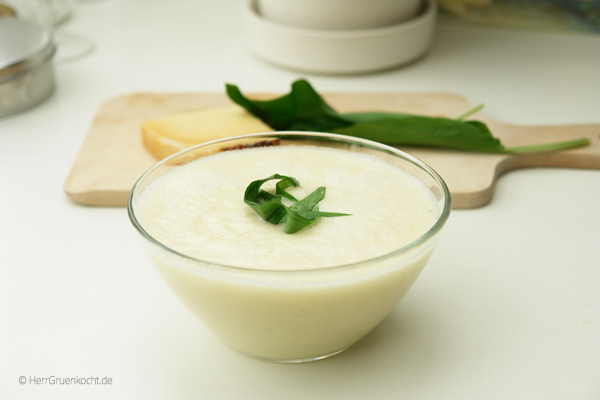- Vorspeise: Kohlrabischaumsuppe mit Käse und Bärlauch