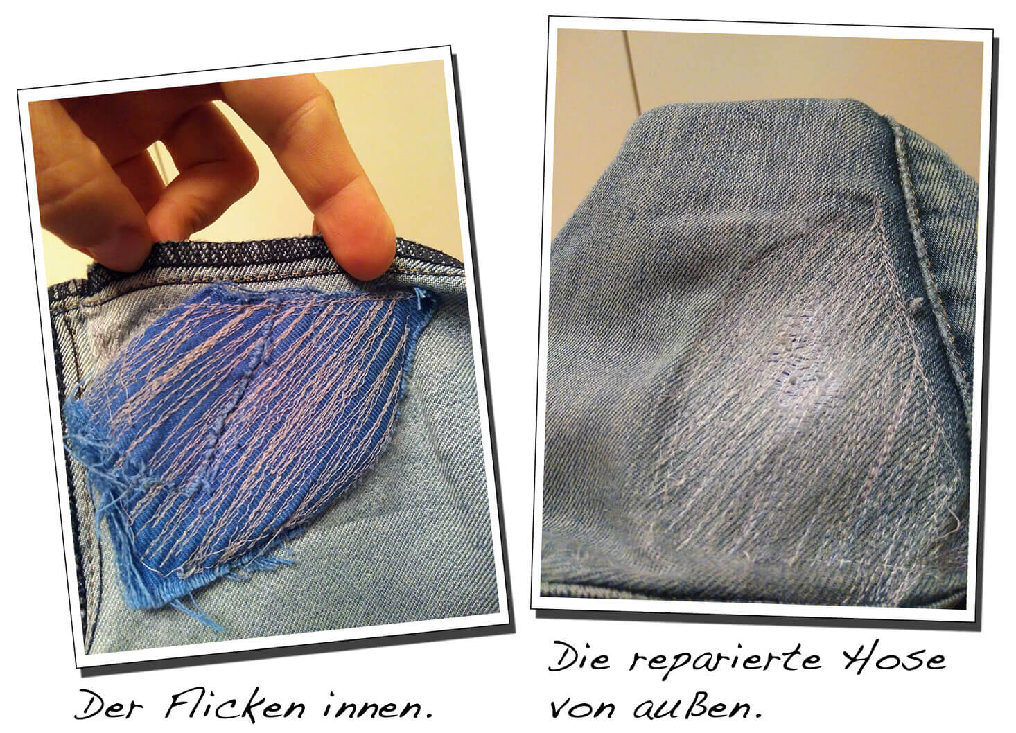 Übrigens: Wenn du die Hose selbst nicht reparieren kannst oder willst, geh in eine Änderungsschneiderei. Die können dir die Hose recht fix für kleines Geld reparieren.