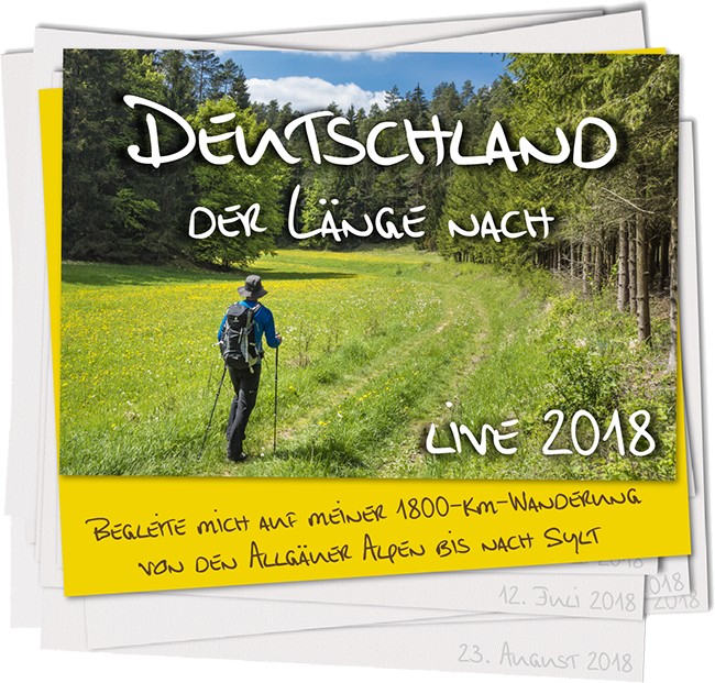 Normalerweise berichten wir nicht über Events oder Ereignisse, doch das Projekt vom Blogger-Kollegen Christof von einfach-bewusst finde ich einfach zu gut, um “ungebloggt” zu bleiben. Und zwar wandert er vom südlichsten Punkt Deutschlands, dem Haldenwanger Eck in den Allgäuer Alpen, bis zum nördlichsten Punkt Deutschlands, dem Ellenbogen auf Sylt. Das sind 1.800 km. Das ganze macht er minimalistisch mit einem 30-Liter-Ultralight-Rucksack und er ernährt sich rein pflanzlich. Nach 3 Millionen Schritten und in ca. 75 Tagen will er Anfang September “oben ankommen”.